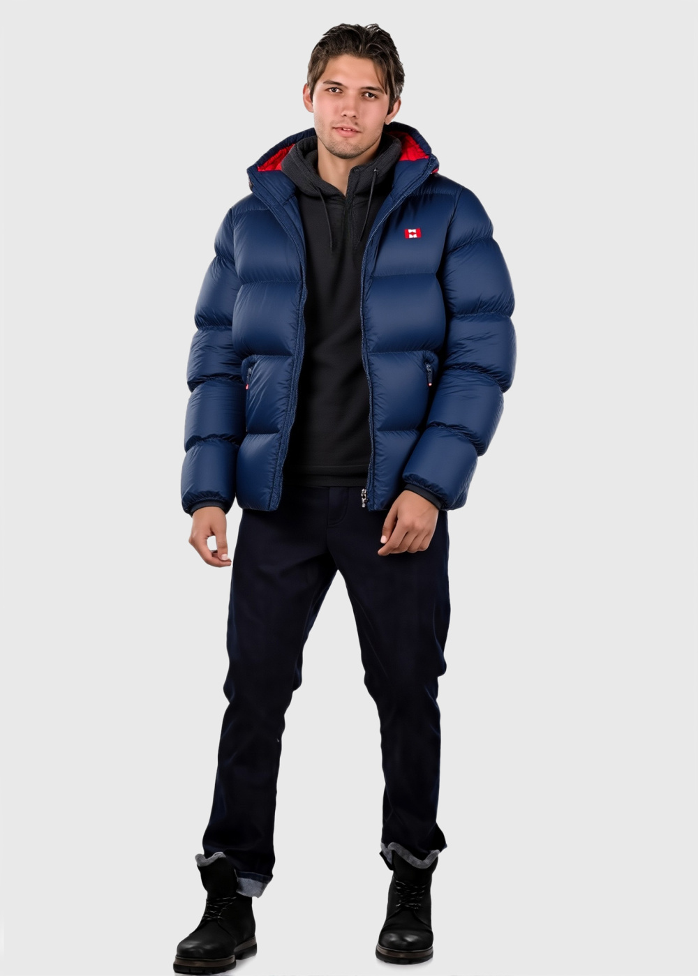 Enzo zila īsa jaka ar kapuci