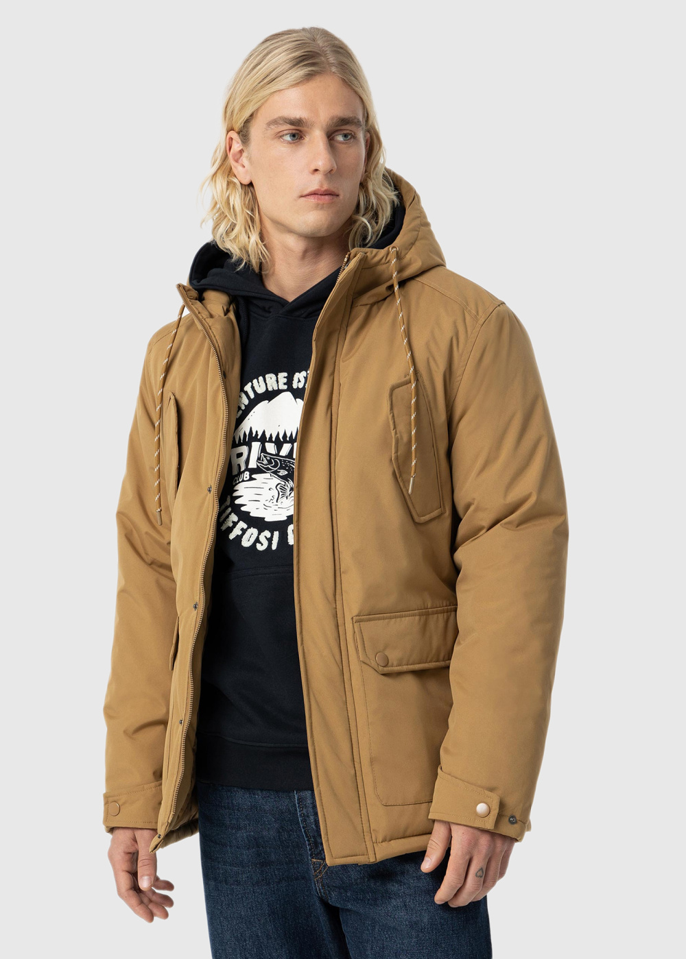 Gaiši brūna vīriešu parka ar kargo tipa kabatām