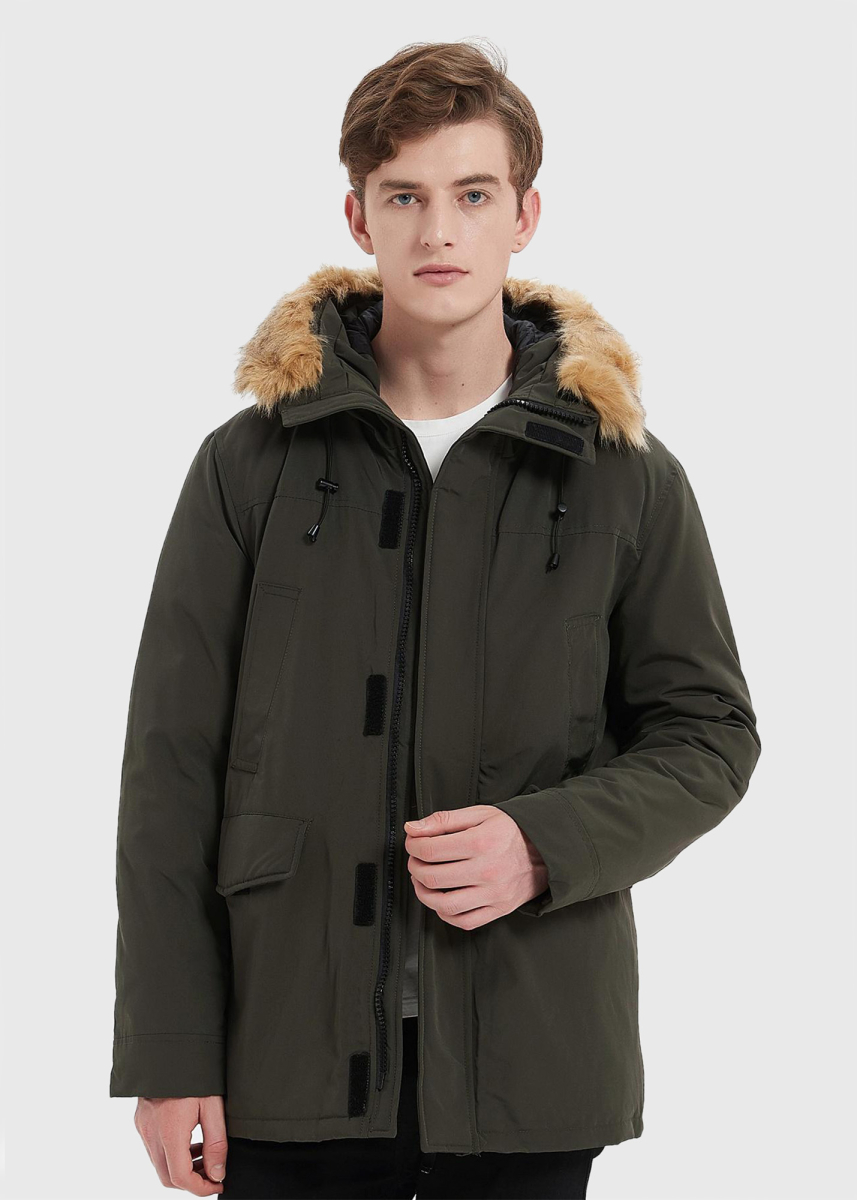 Genesio tumši zaļa vīriešu parka ar kapuci