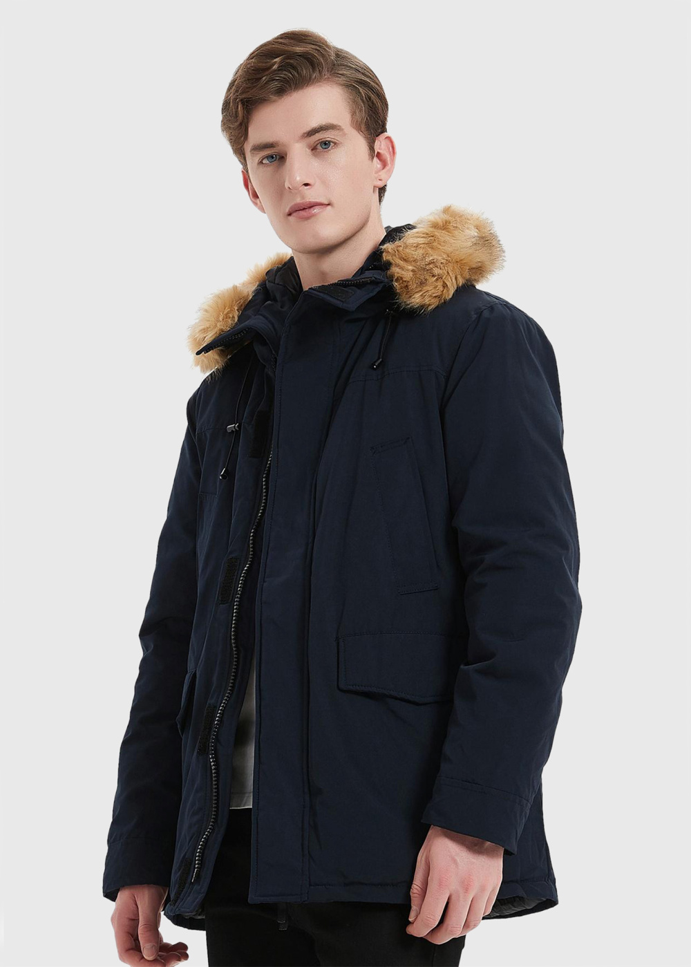 Genesio tumši zila vīriešu parka ar kapuci