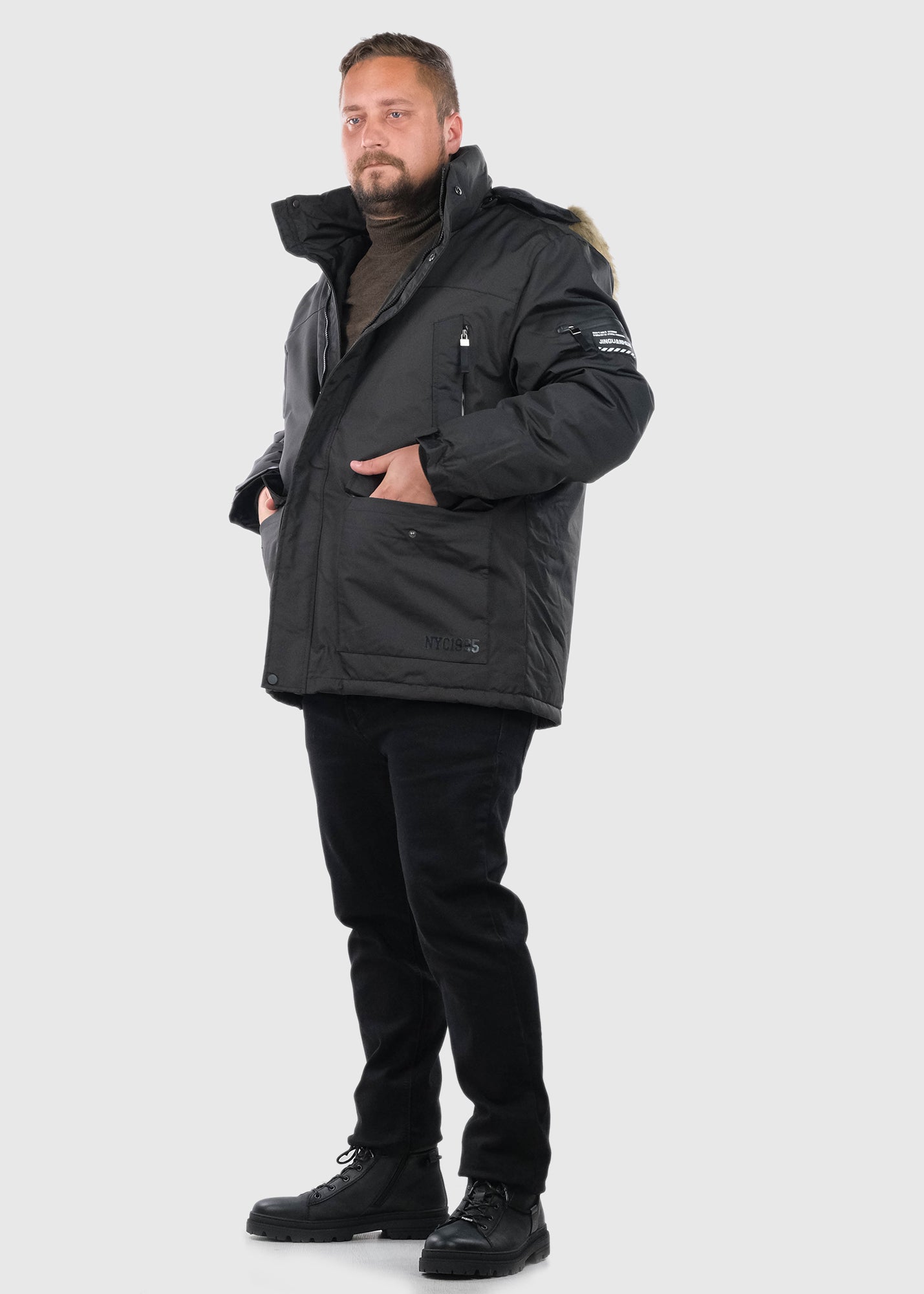 Giusi Lielo izmēru melna vīriešu jaka ar kapuci