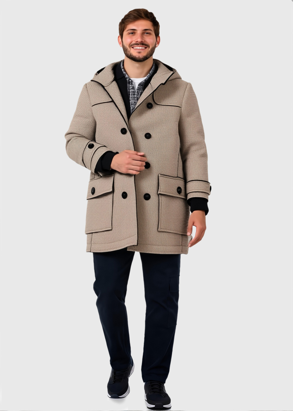 Bēšs mētelis ar kapuci