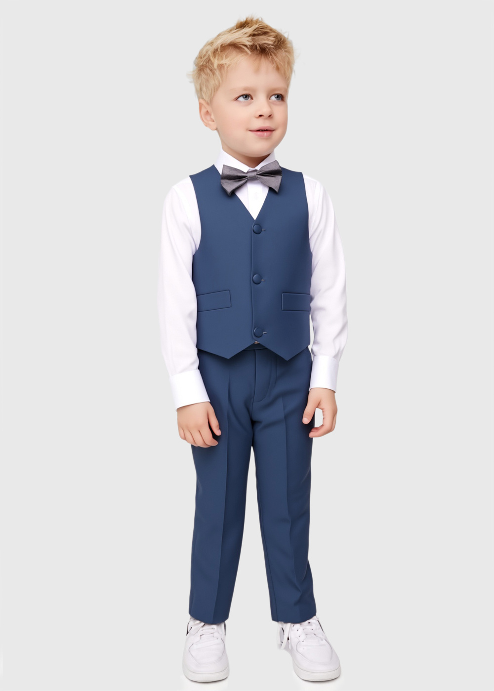 Papildus info: Bikses, žakete, krekls, veste un tauriņš iekļauta komplektā