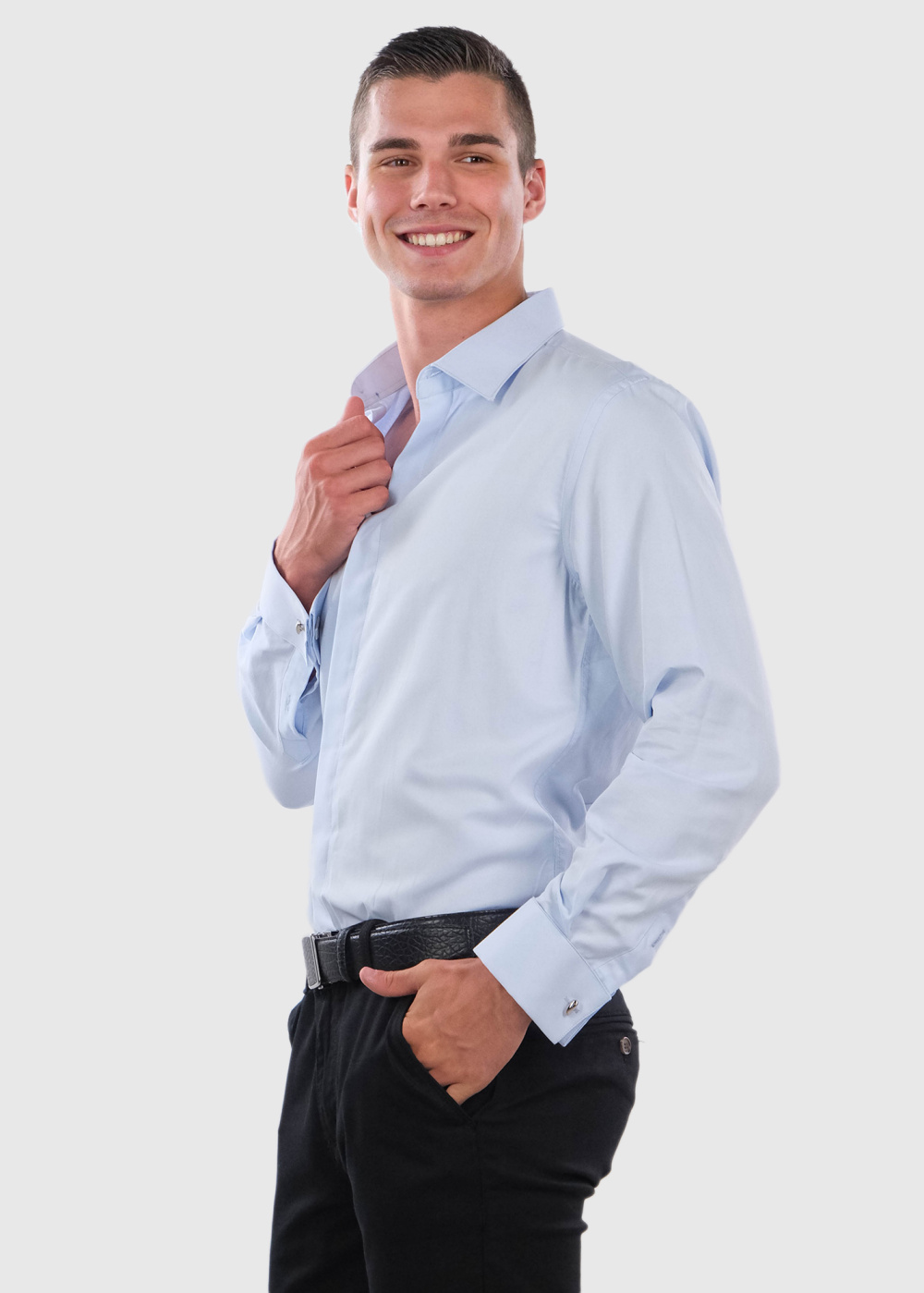 Ferenc gaiši zils pieguļošais krekls