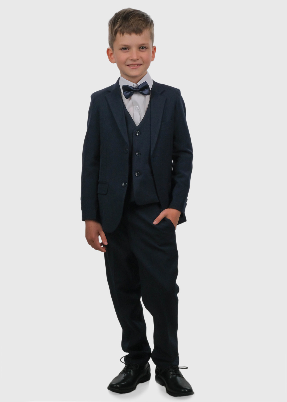 Papildus info: Bikses, žakete, krekls, veste un tauriņš iekļauta komplektā